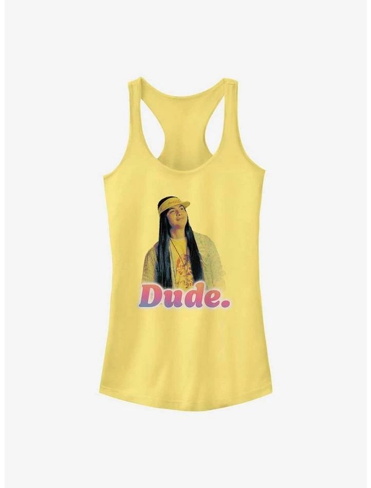 Dude. DUDE! This banana yellow racerback tank — inspired by Stranger Things 4 — features eternally laidback Surfer Boy Pizza delivery dude, Argyle!