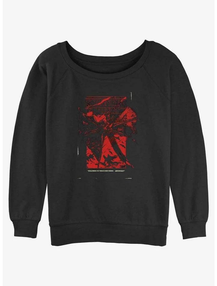 Best Pirce ๐ Stranger Things Distort Demobat Poster ๐ง Girls Slouchy Sweatshirt ๐