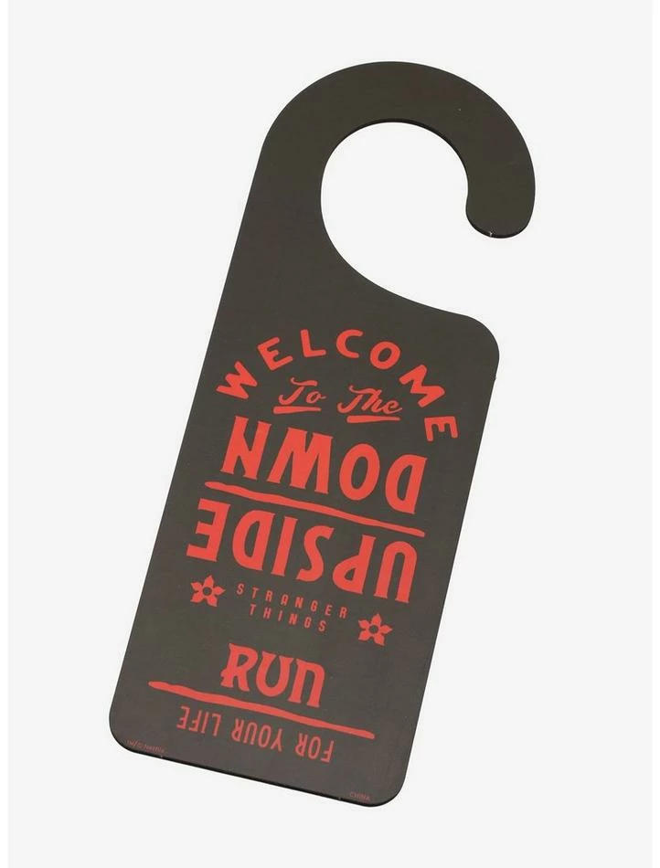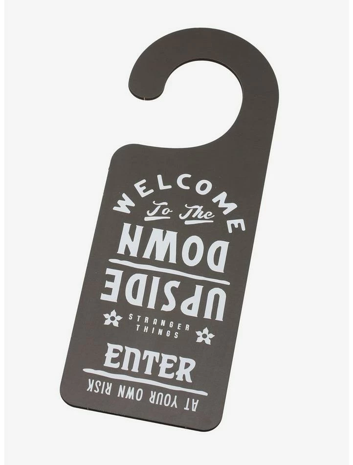Enter the Upside Down, if you dare! Let others know whether you want visitors in your room with this Stranger Things door sign, featuring “Welcome to the Upside Down” verbiage on both sides. “Enter at your own risk” is on one side and “Run for your life” is in red on the other side.