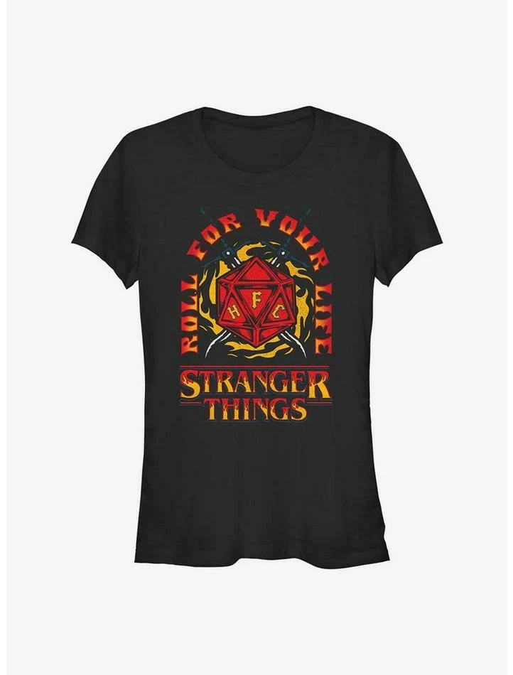 Get ready to roll for your life! This fitted, lightweight black Stranger Things tee features the iconic die of the D&D-playing Hellfire Club.
