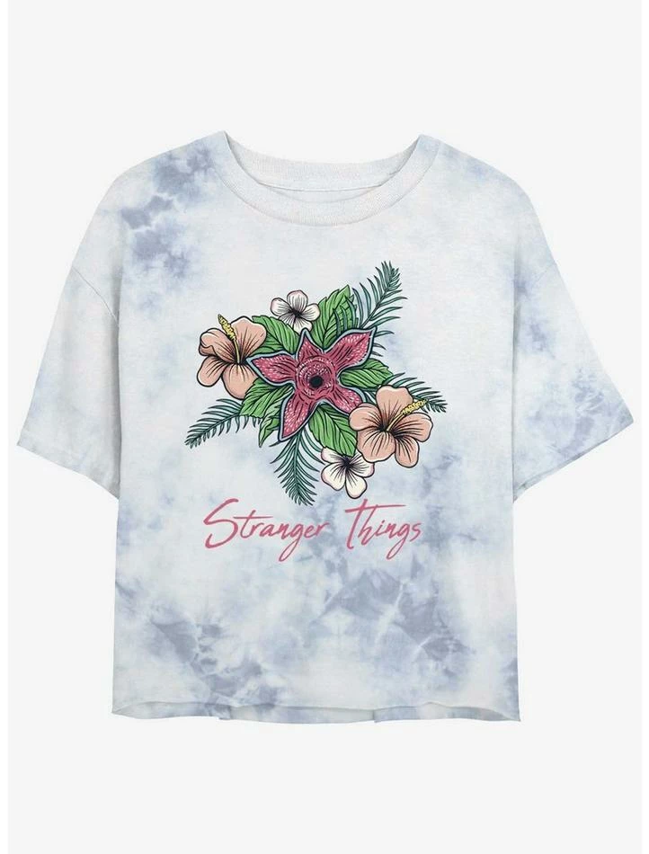 Coupon 🛒 Stranger Things Floral Things Mineral Wash Crop 👧 Girls T-Shirt 🎁