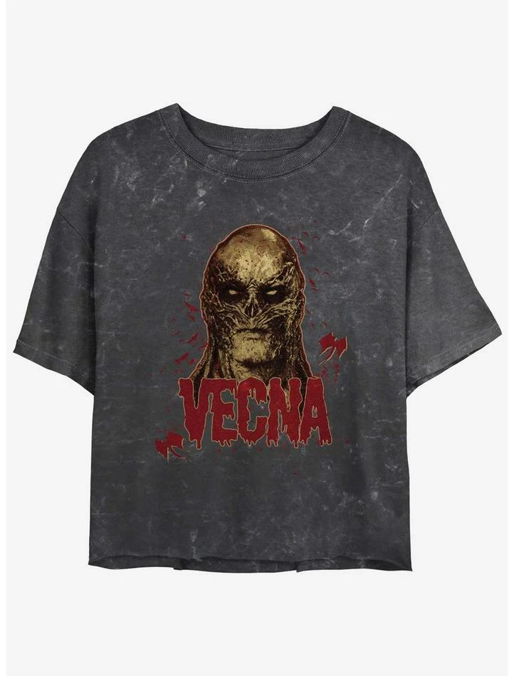 Discount 😀 Stranger Things Gritty Vecna Mineral Wash Crop 👧 Girls T-Shirt 👏