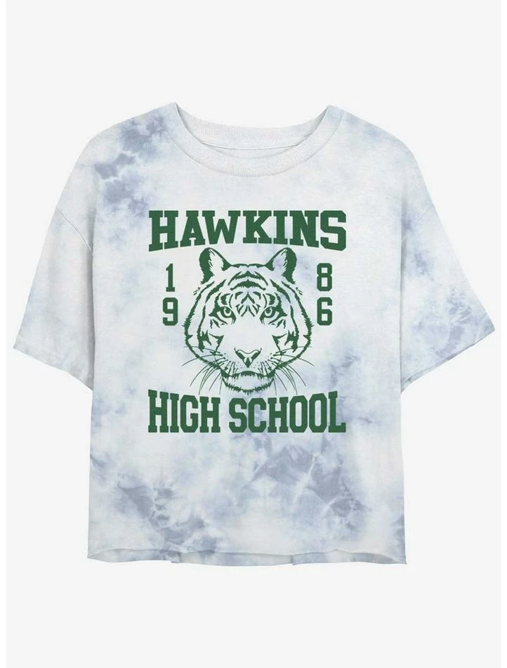 New ๐ Stranger Things Hawkins High School 1986 Mineral Wash Crop ๐ง Girls T-Shirt ๐คฉ