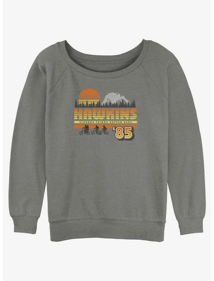 Best Pirce ๐ Stranger Things Hawkins Vintage Sunsnet ๐ง Girls Slouchy Sweatshirt ๐