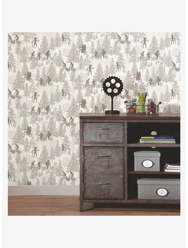 Offered in two colorways, this wallpaper will easily match your home or room’s decor. Exclusively licensed from Netflix, this Hawkins Woods Peel and Stick Wallpaper is easy to install and remove! With high-quality vinyl and adhesive, RoomMates Decor peel and stick wallpaper removes in full panels and leaves no residue behind.