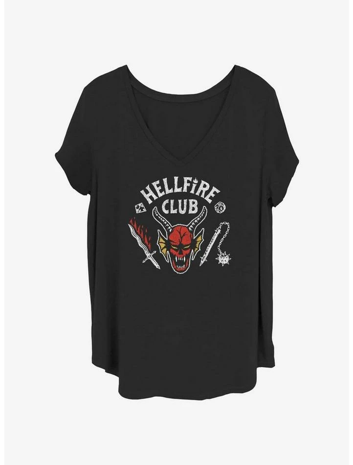 Deals ❤️ Stranger Things Hellfire Club Logo 👧 Girls T-Shirt Plus Size ⌛