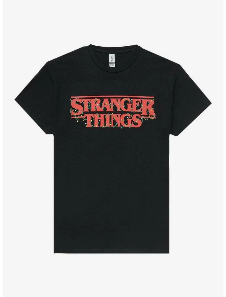 Holiday lights take on a whole new meaning in Stranger Things! Nonetheless, this tee, which shows the series logo wrapped in string lights, is perfect for holiday times… or all the time!