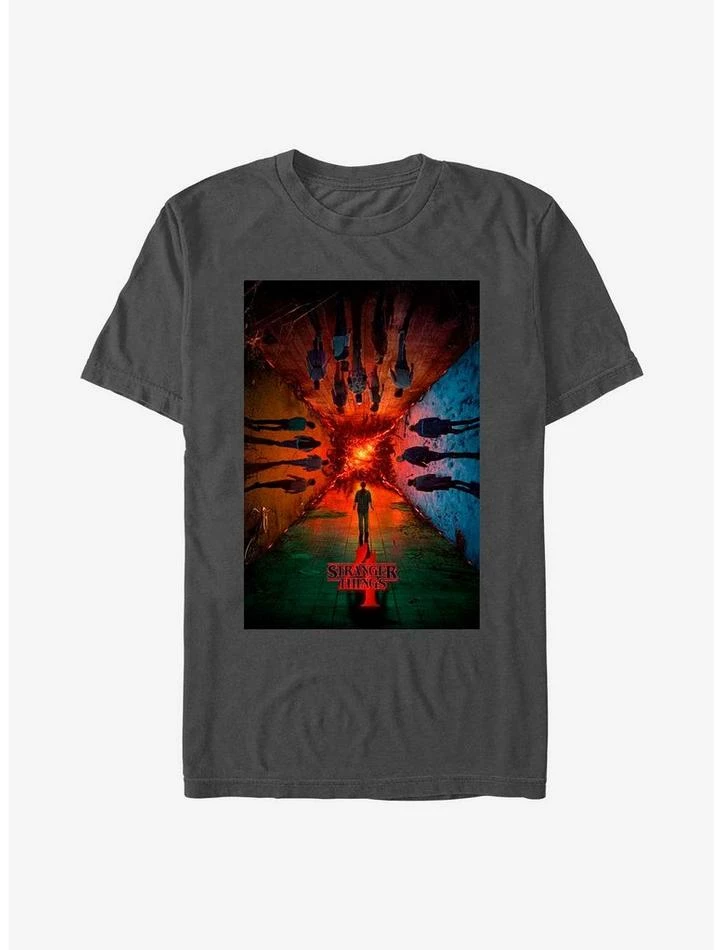 Every ending has a beginning. Return to the Upside Down with this lightweight charcoal grey graphic tee that features ominous poster art from Stranger Things 4.