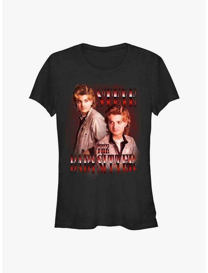 The babysitter we all deserve! This fitted, lightweight black graphic tee features all around nice guy Steve Harrington from Stranger Things.