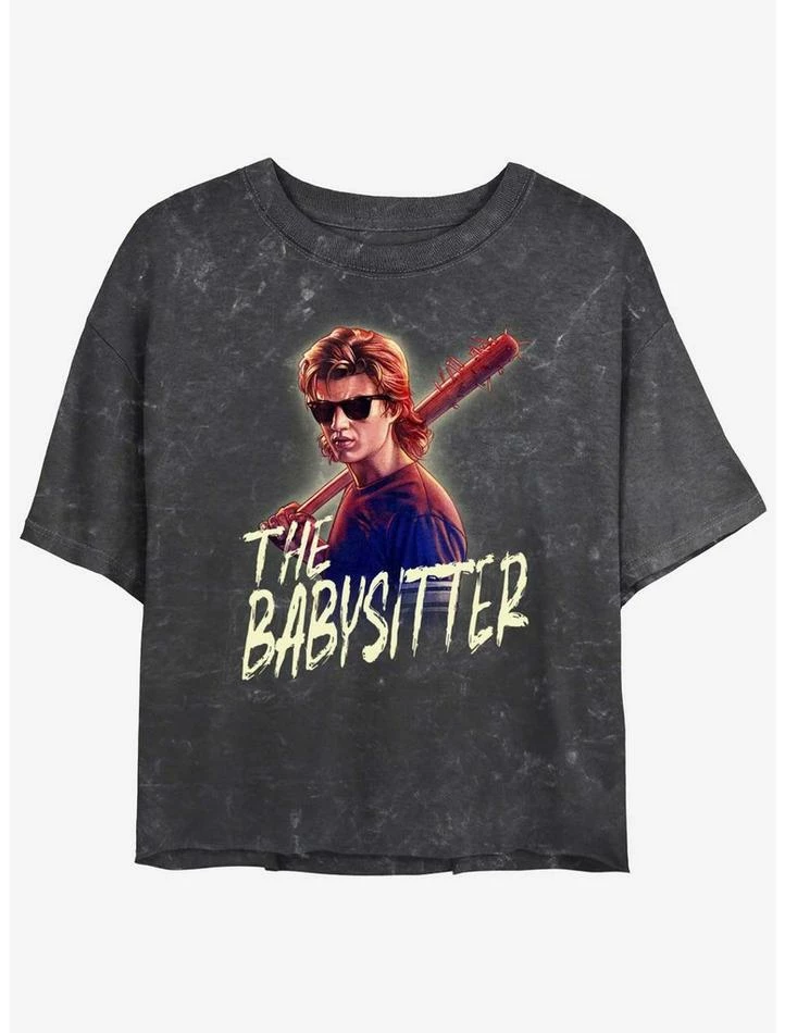New 😉 Stranger Things Steve The Babysitter Mineral Wash Crop 👧 Girls T-Shirt ⌛