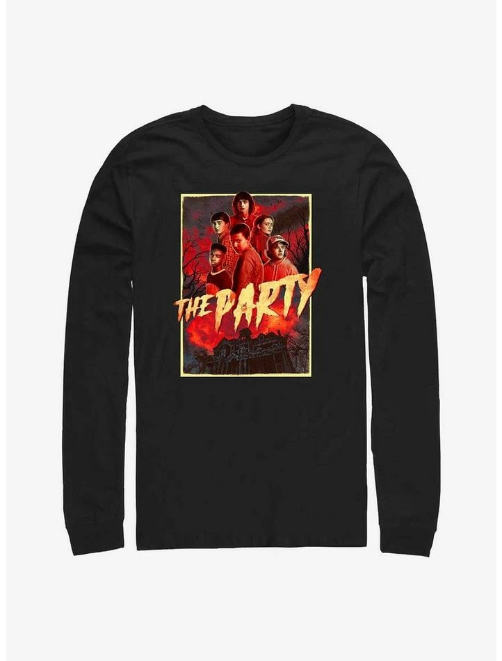 Mike. Will. Max. Lucas. Dustin. Eleven. Join The Party with this black long-sleeved Stranger Things tee.