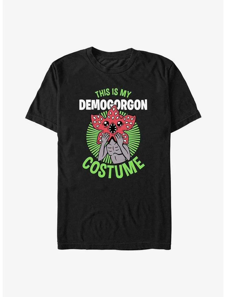 No tricks, just treats! This lightweight black graphic tee — inspired by Stranger Things — features a surprised demogorgon along with “This is my demogorgon costume” verbiage.