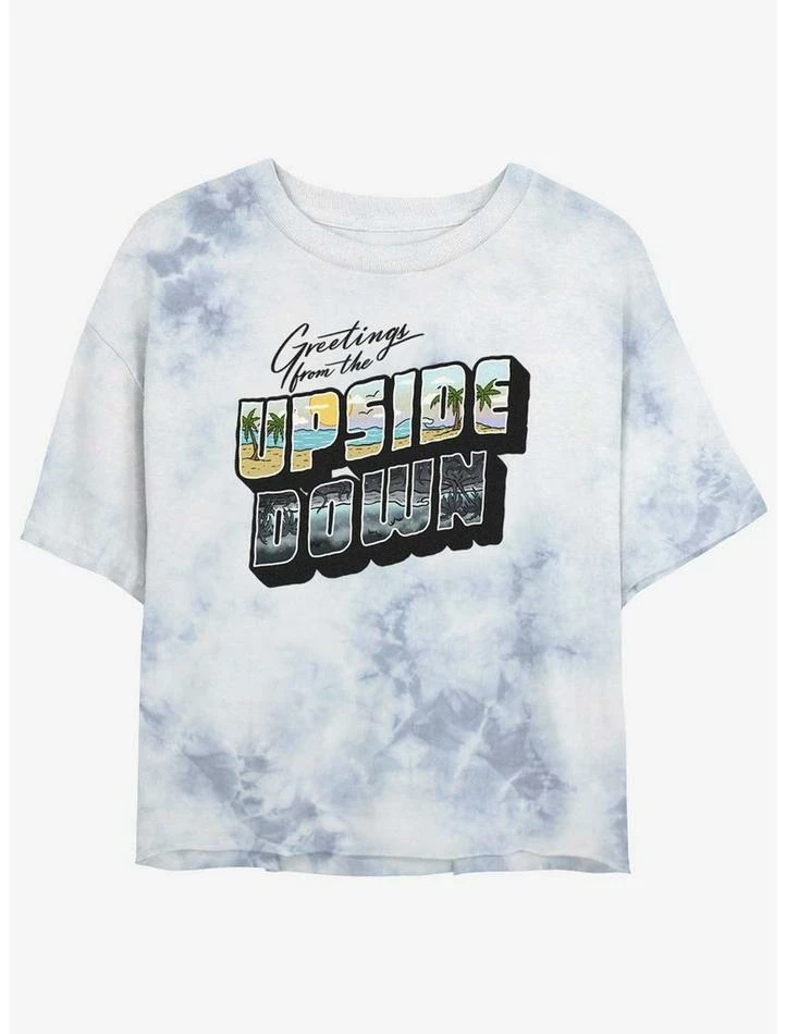 Discount ✨ Stranger Things Upside Down Postcard Mineral Wash Crop 👧 Girls T-Shirt 💯